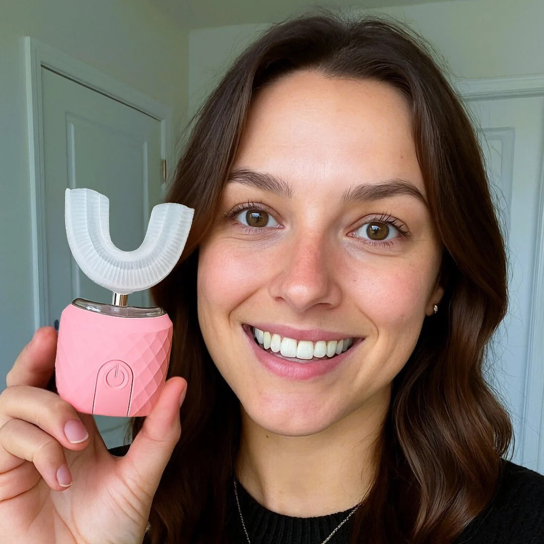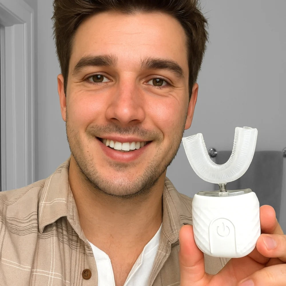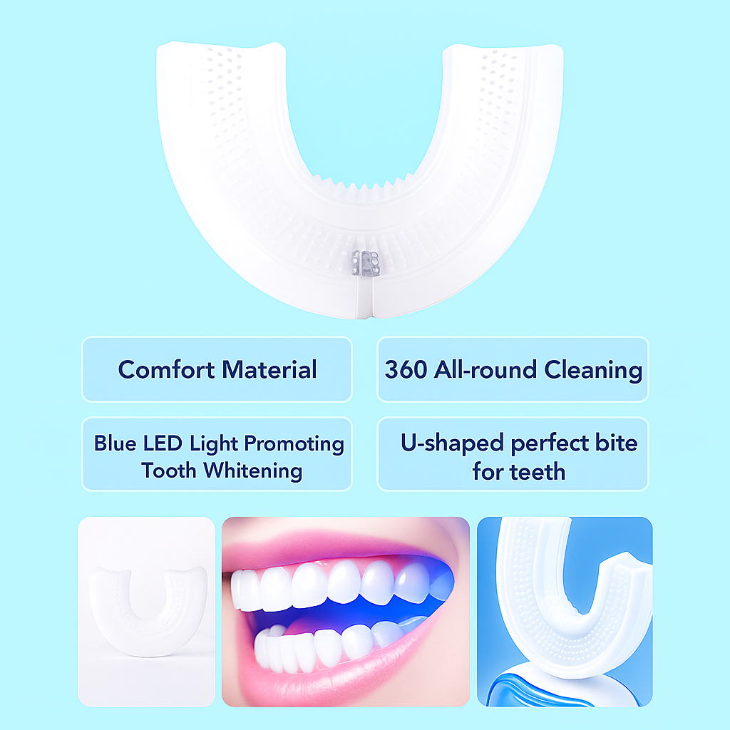 The U-shaped design surrounds your teeth, including hard-to-reach areas, ensuring all-around cleaning in seconds.